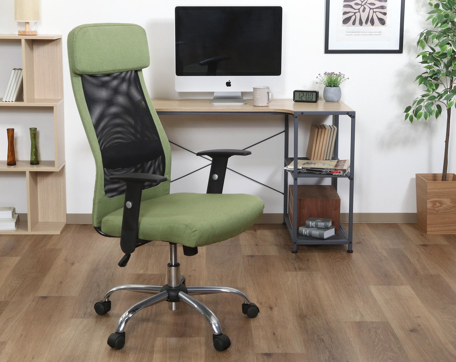 メッシュの通気性とファブリックのデザイン性をミックスしたオフィスチェア。
