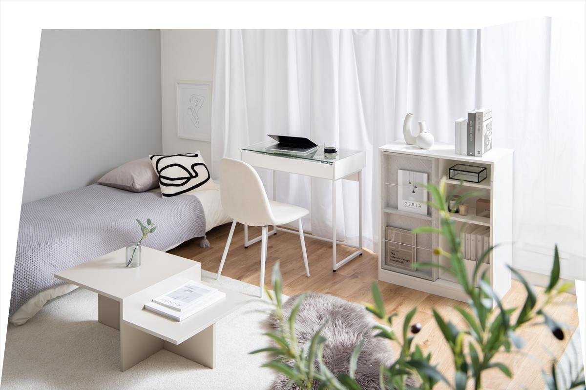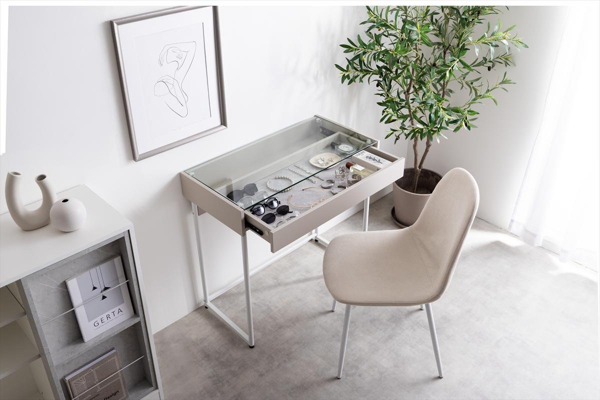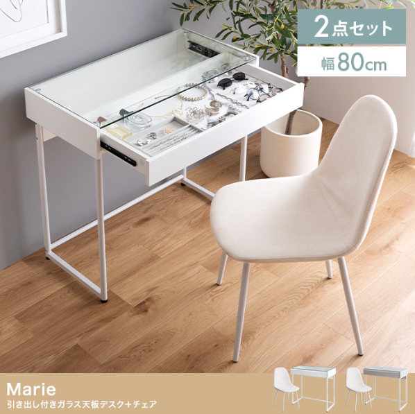 【デスク】MDF(メラミン貼り)、強化ガラス