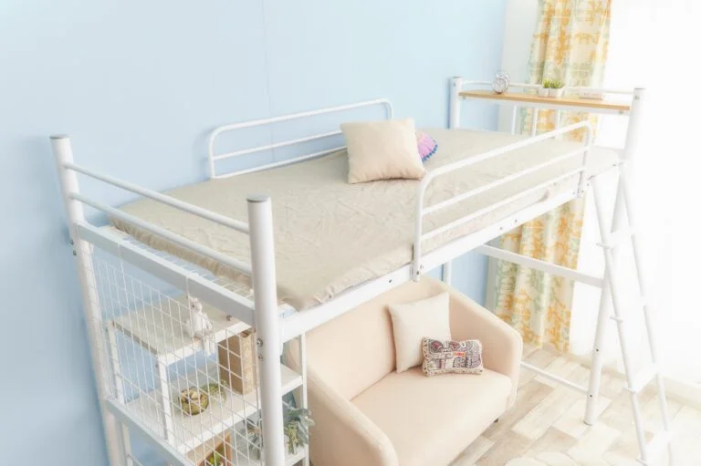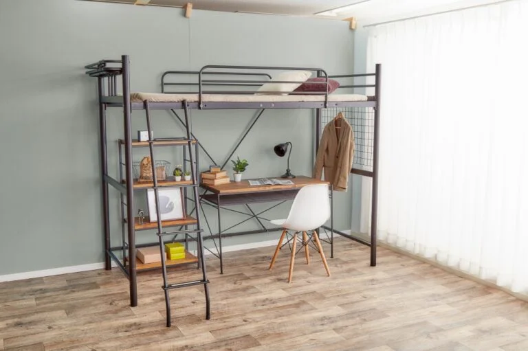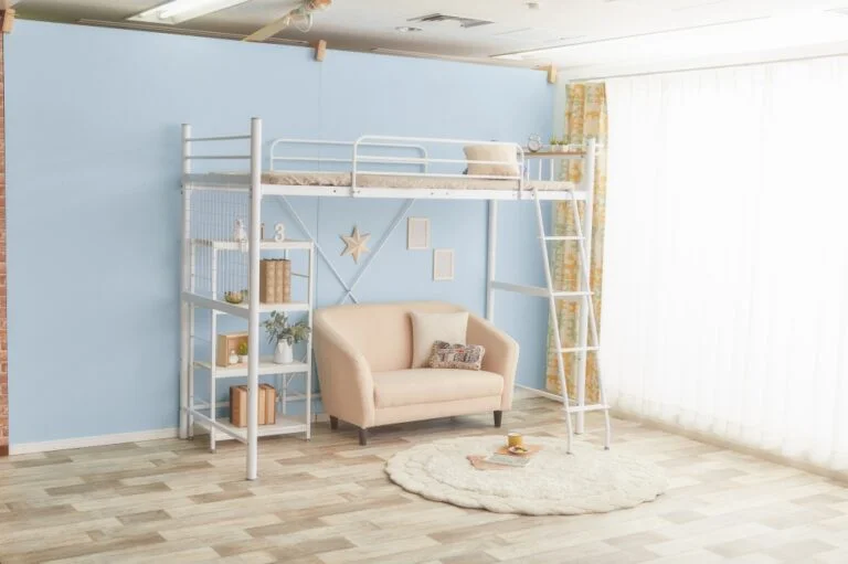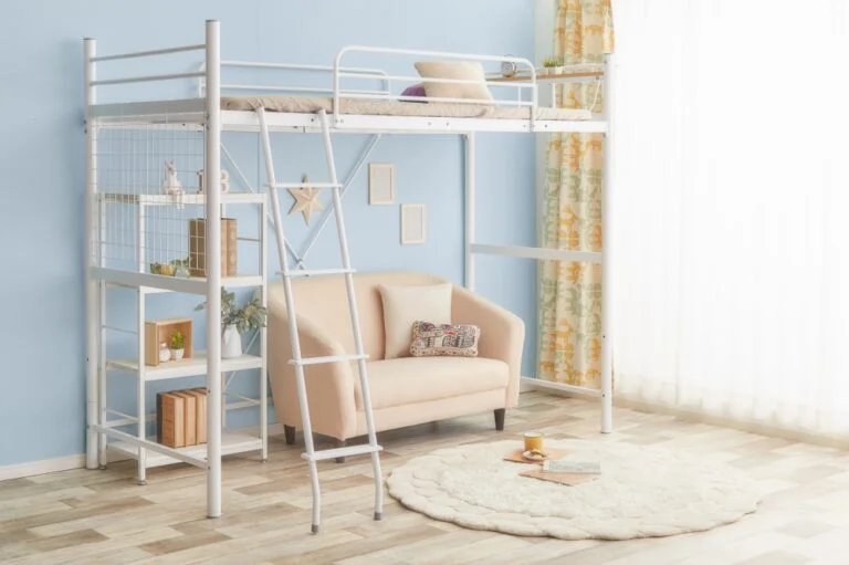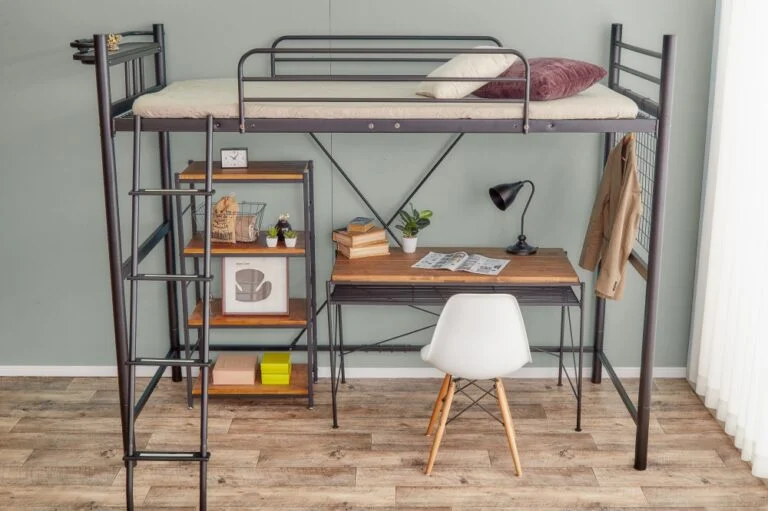高さ調節可能パイプベッド。お部屋をもっと広々使えるロフトベッド。